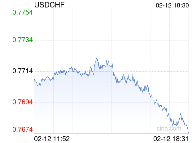 新浪外汇消息2026年02月12日,截至18时30分,外汇市场上美元兑瑞士法郎汇率跌破1美元兑换0.7675瑞士法郎。跌幅为-0.5056%