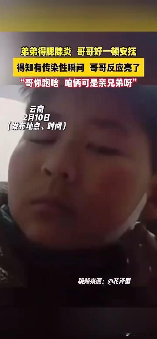 近日,云南一男生得腮腺炎,哥哥好一顿安抚,当妈妈说弟弟是被传染的,哥哥确认“现在还传染吗?”弟弟回答“嗯”,哥哥得知会传染秒变脸,一听撒腿跑了。 这段小插曲看似简单,却折射出许多家庭教育和孩子心理的微妙之处。哥哥那一瞬间的反应,既是真实的担忧,也暴露出对“传染”这个词的天真理解——“会传染”在他心中,仿佛是一种看不见的威胁,瞬间点燃了恐惧的火苗。 其实,这背后隐藏着一个深刻的社会现象:我们对疾病的恐惧,往往源自不了解和误解。 孩子们对“传染”概念的模糊,不仅让他们产生恐惧,也让成人在教育中陷入误区。 很多家长在面对孩子的疑问时,可能没有耐心去解释“传染”只是病毒的传播方式,而是用“不要怕”或“没事”的空洞安慰掩盖真相。 这种方式,虽能短暂缓解焦虑,却难以让孩子真正理解,也可能让他们在无知中产生更深的恐惧。 更值得深思的是,哥哥的反应其实反映了我们许多成年人在面对未知和危险时的心态:害怕、逃避、甚至“撒腿跑”。这不只是孩子的天真,更是成人的无奈。 我们习惯用“躲避”来应对风险,却忽视了教育的力量——让孩子在理解中建立安全感,让他们知道“传染”只是疾病的自然传播,而不是“魔鬼”的代名词。 这件事也提醒我们,家庭教育要从娃娃抓起。面对疾病和风险,不能只靠“不要怕”来安慰,而要用科学知识引导,让孩子明白“传染”只是生理现象,不是“可怕的怪物”。同时,也要让他们学会面对恐惧,用理性战胜情绪。 最后,这个小插曲激发了我们对社会公共教育的反思:在信息爆炸的时代,公众尤其是孩子们的健康教育亟需系统化、科学化。 只有当我们用正确的知识武装自己和下一代,才能真正减少恐惧,增强抵抗力。 这件事虽小,却折射出大问题——在恐惧面前,理解和教育才是最强的武器。 我们期待,未来的家庭和社会,能用更多的耐心和科学,让每个孩子都能在阳光下健康成长,而不是在恐惧中迷失。
