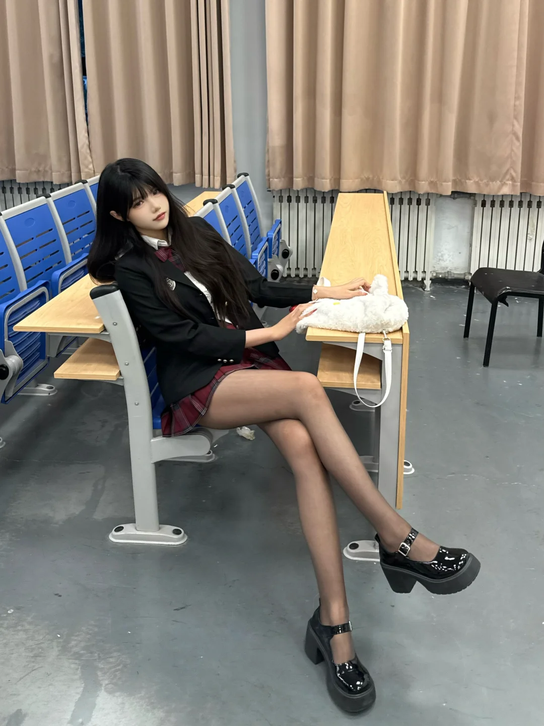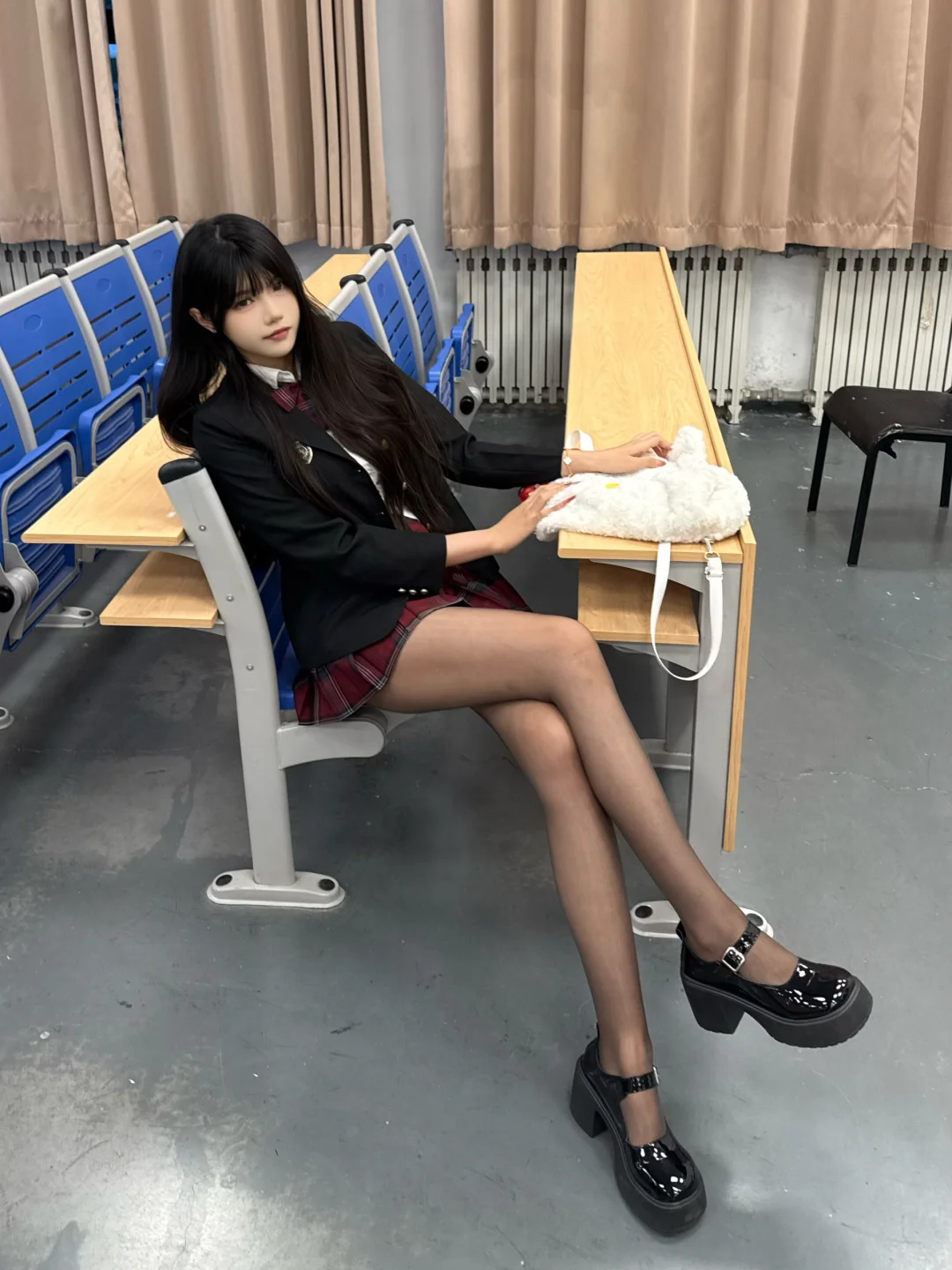 jk穿搭,看不出来穿的是肉丝jk裙装搭配“如何露腿”搭配鞋子?大长腿jk穿