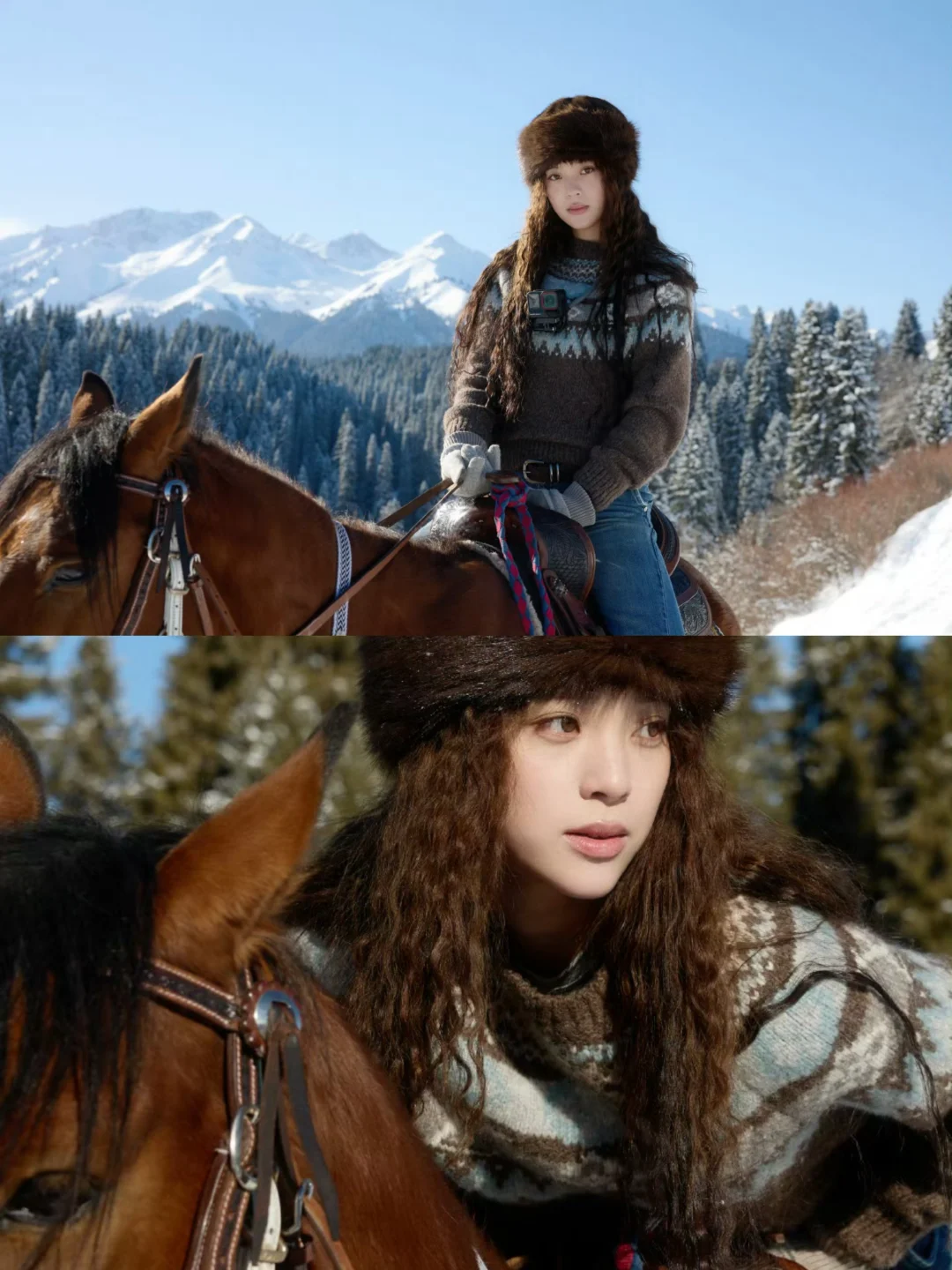 欧阳娜娜新疆plog更新,羊毛卷好可爱啊,还穿了两件费尔岛毛衣,又一组旅拍模板! 欧阳娜娜 明星同款 明星私服 图源 欧阳娜娜工作室