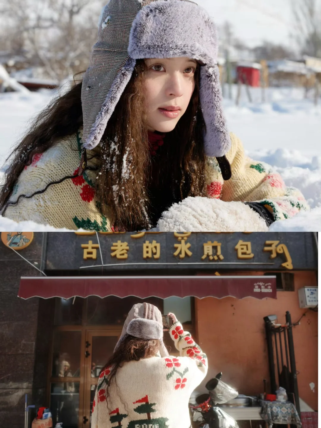 欧阳娜娜in新疆,羊毛卷配费尔岛毛衣,好出片