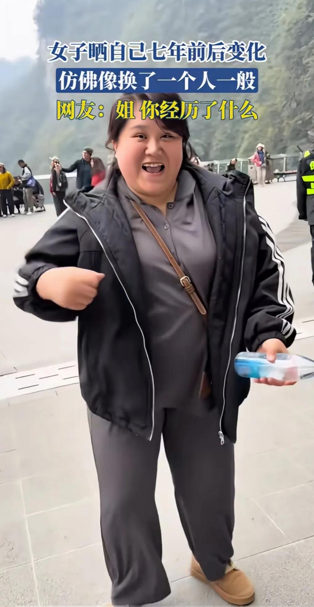 女子没结婚的时候长相甜美,身材苗条。 婚后七年,变成了肥胖大妈。