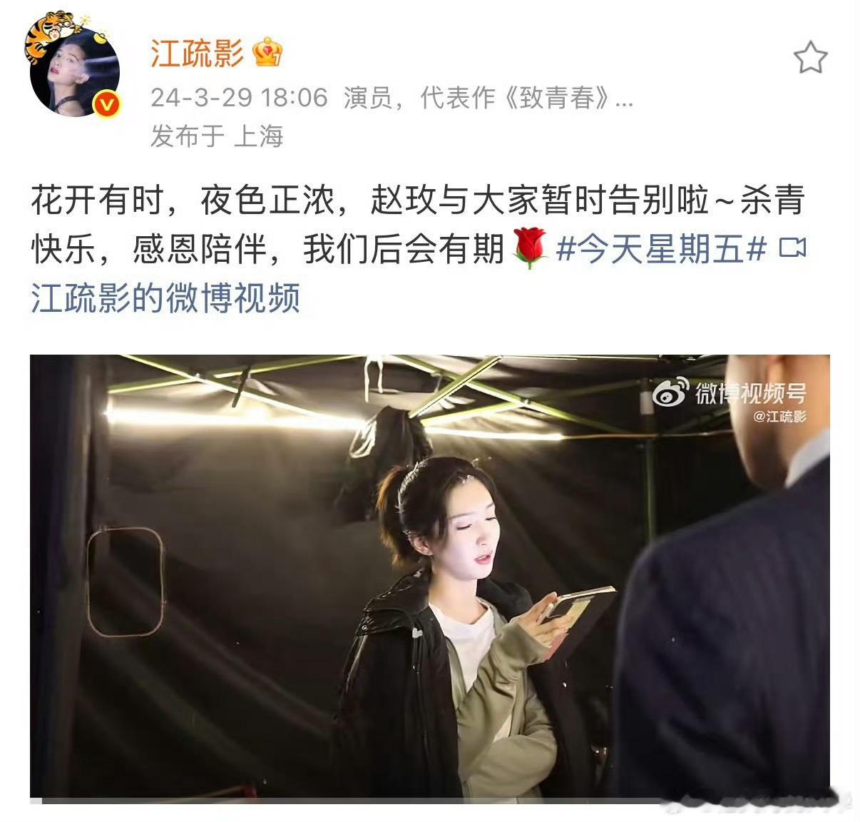 江疏影为赵玫发了22条微博 22条动态见证着江疏影对赵玫的上心!她精准抓住角色“先保护自己再爱别人”的内核,这种对角色的深耕太让人佩服,期待她解锁更多角色~