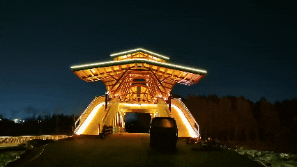 桥梁在结构上实现“下刚上柔”的巧妙融合。桥基部分结合传统石拱桥的稳固感与现代钢结构的力度,支撑起整体跨度;上部人行拱桥则采用传统叠顶廊桥的轻盈形态,营造舒缓的观景体验。桥体如层云叠浪,又似古镇连绵,既呼应滇池水韵,又透出官渡人文温润底色。