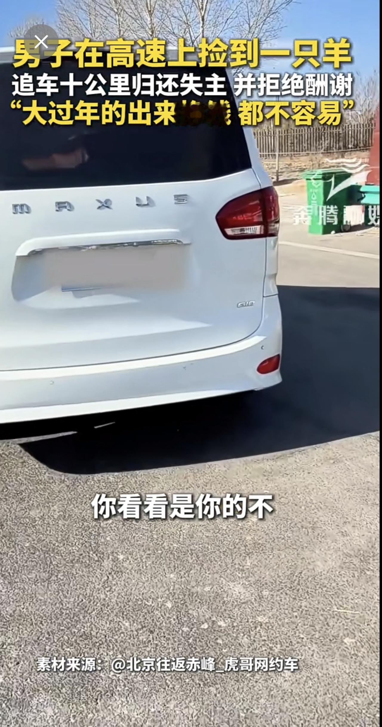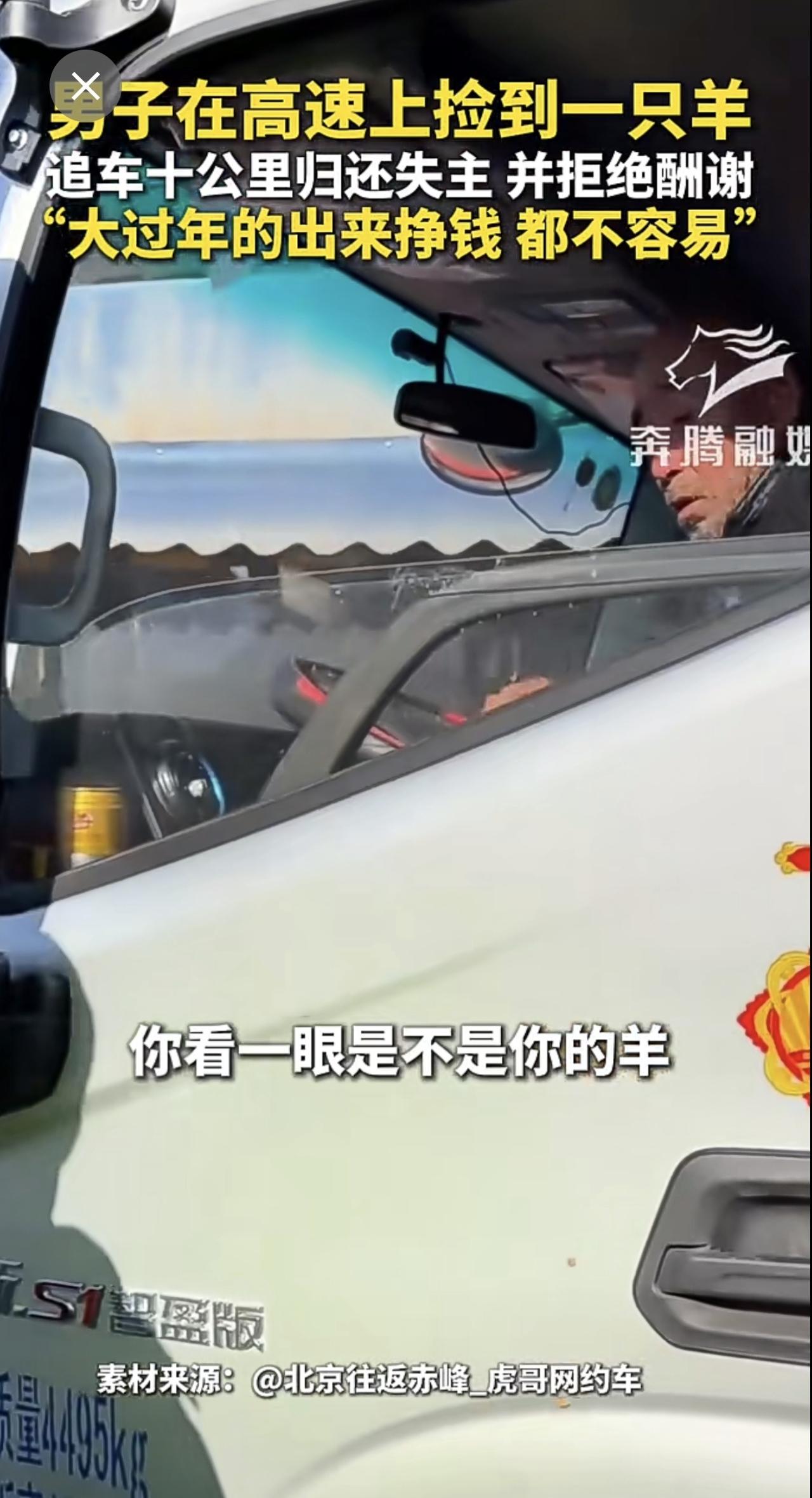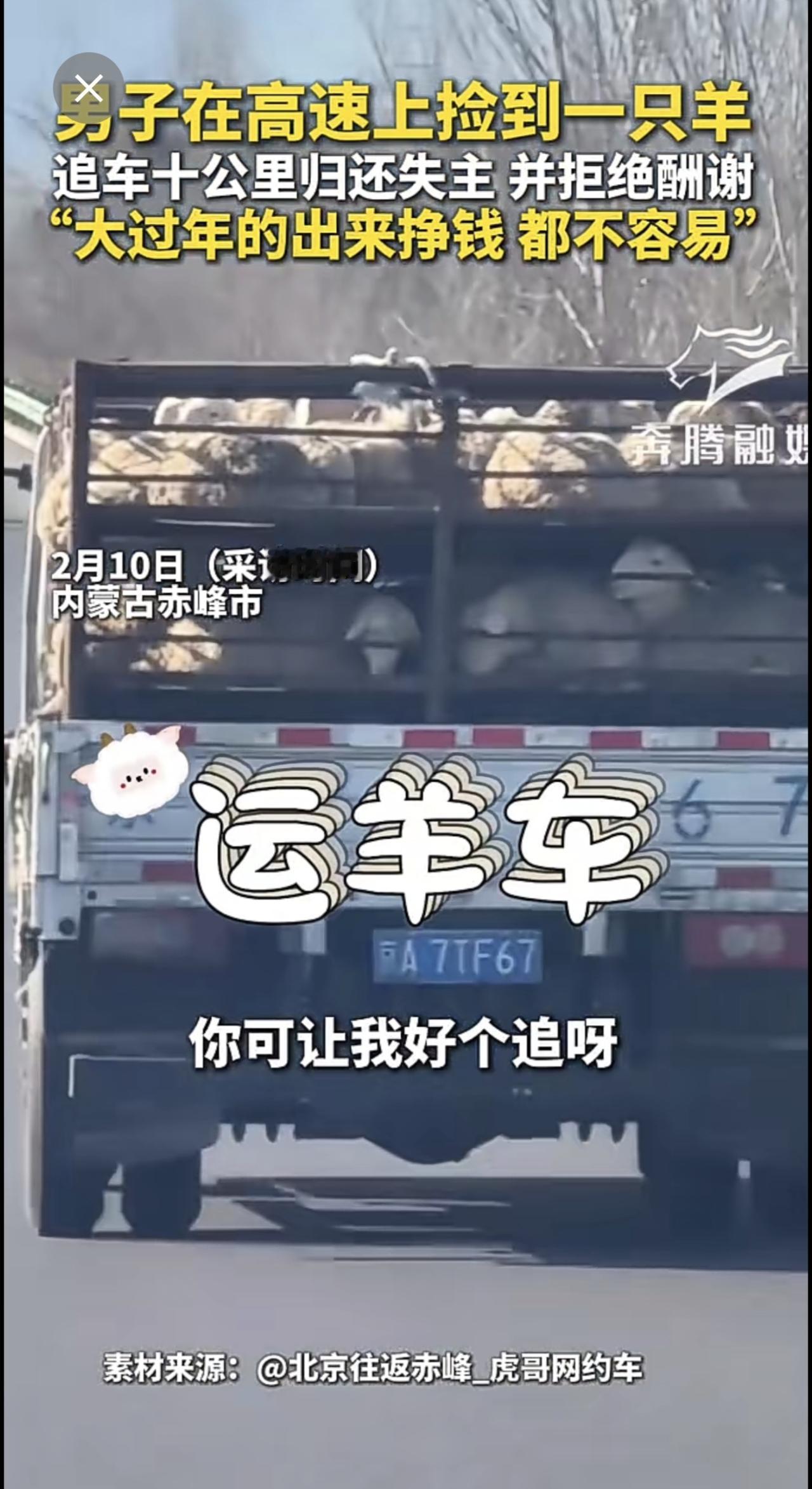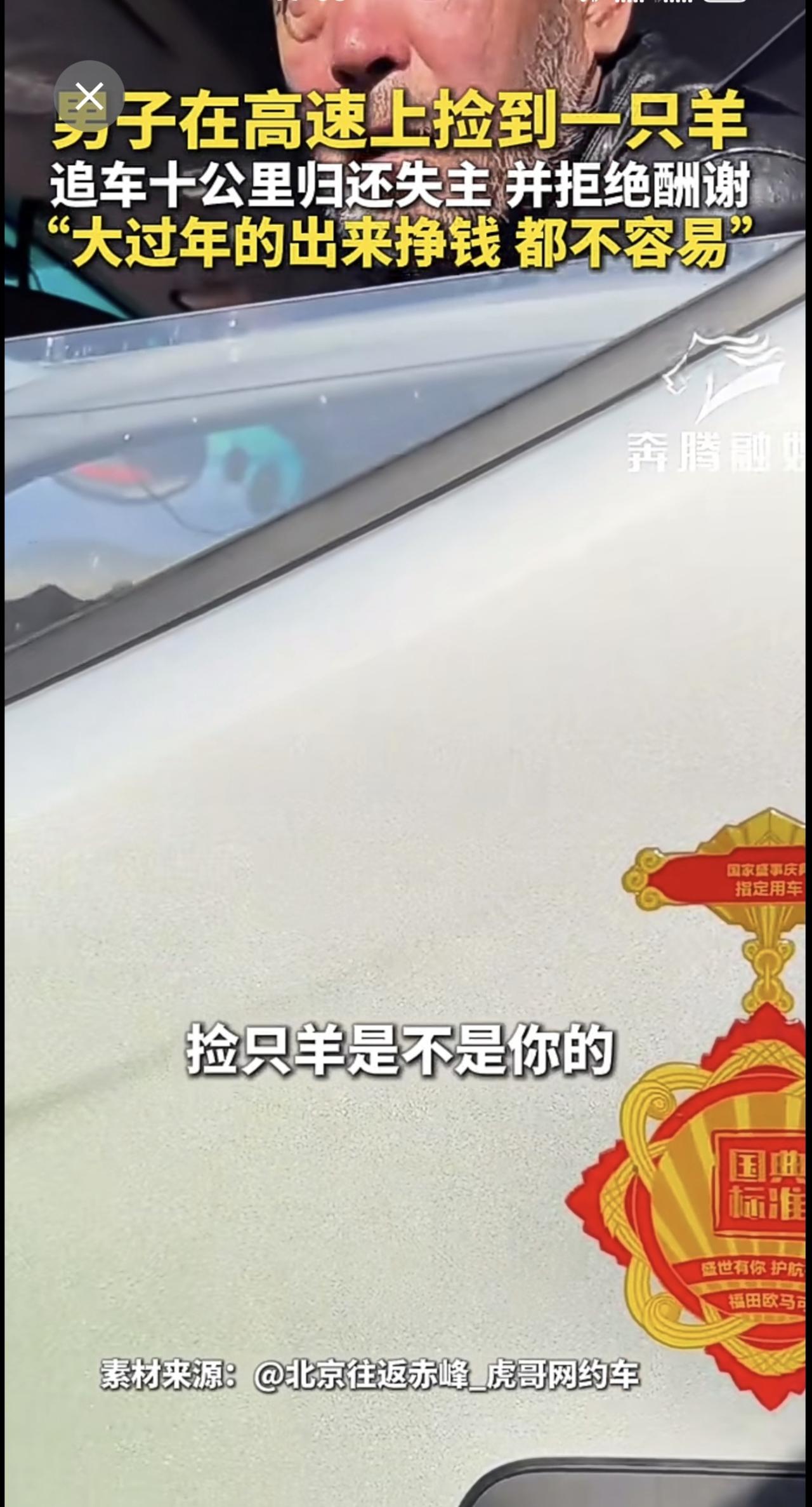 男子在高速上捡到一只羊 追车十公里归还失主 并拒绝酬谢 “大过年的出来挣钱 都不