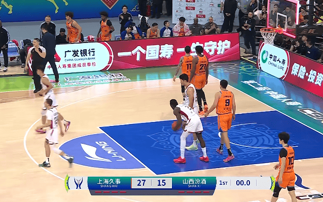 第一节比赛中,上海27-15领先山西。