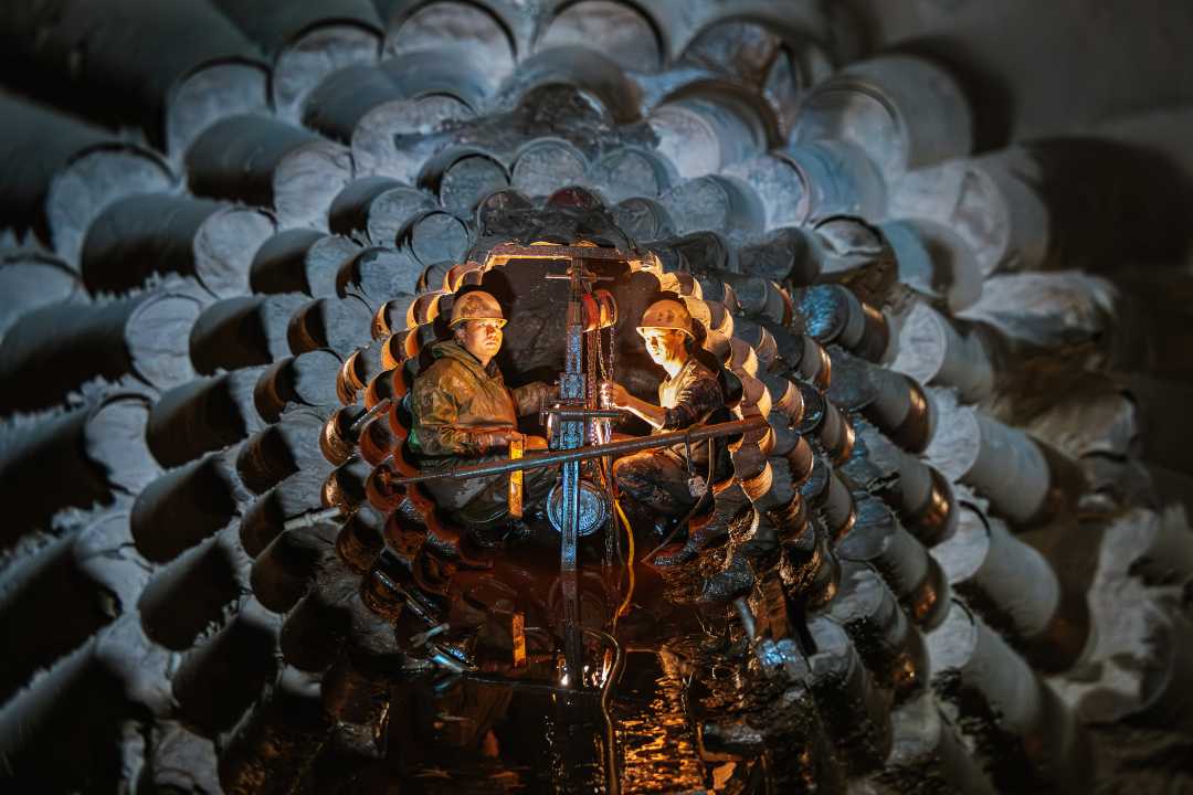 2月11日,江西省赣州市一生活污水治理项目现场,工人正在施工。