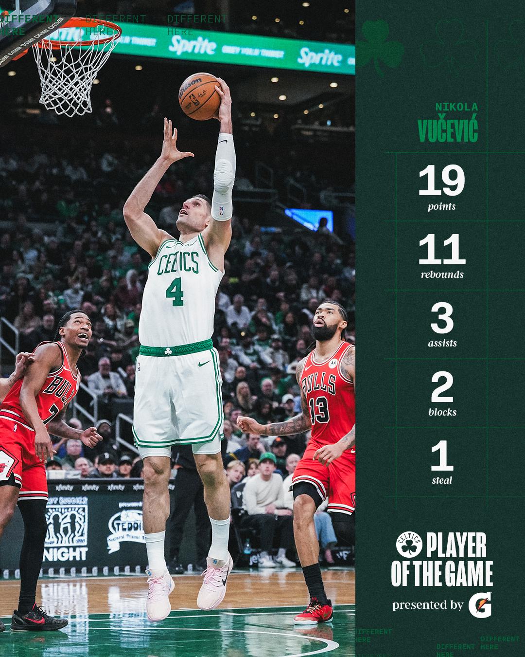 “生擒公牛!打出出色表现的尼古拉-武切维奇当选为本场最佳!”凯尔特人官方附文道。