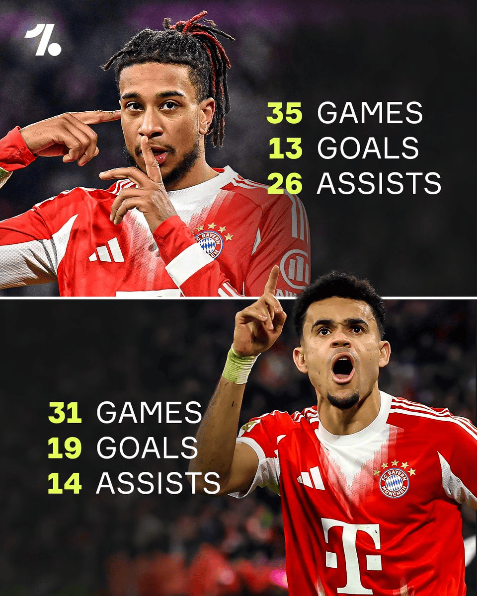 本赛季,奥利塞和迪亚斯为拜仁的场均参与进球数均超过1球