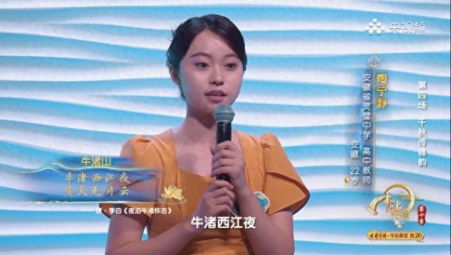 《中国诗词大会》是中央广播电视总台联合教育部共同倾力打造的语言文化类精品节目,是央视首档以诗词为内容的大型全民互动文化节目,第十季正在热播。这位来自安徽当涂的高中老师名叫陶宁静,是安徽省灵璧中学的高中教师。