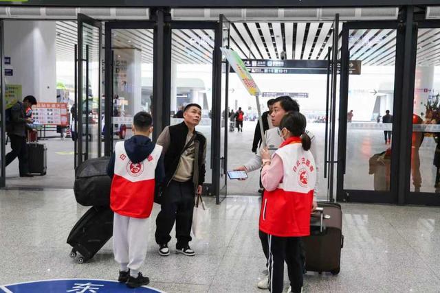 广州白云站青年志愿服务队队长何敏介绍,春运期间,广州白云站实行两班倒志愿服务机制,每日安排160名志愿者上岗,岗前开展10余分钟安全与服务培训,遵循“老带新”模式,助力新志愿者快速上手。志愿服务涵盖出行引导、票务咨询、重点人群帮扶、应急救护等,并依托网约车导航、实时客流监测技术,实现精准服务与高效疏导,全力守护旅客平安返乡。