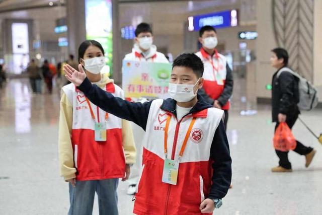 2月10日,该校师生、家长自发前往广州白云站慰问,另有5名同学加入志愿者队伍。这6名小孩哥小孩姐并肩守护旅客回家路,用童真与热忱温暖春运归途。