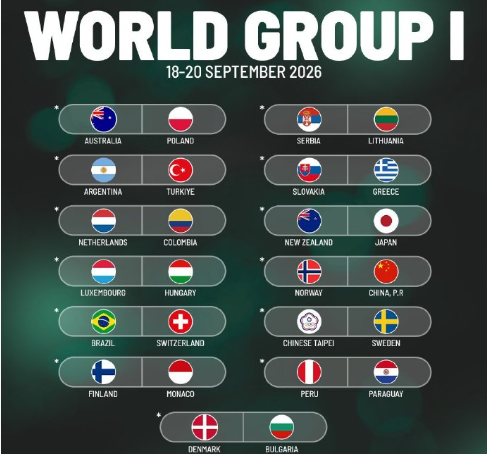 虎扑02月12日讯2026年戴维斯杯世界一组抽签结束,中国队将在客场对阵挪威队,比赛时间为9月18日至20日之间。