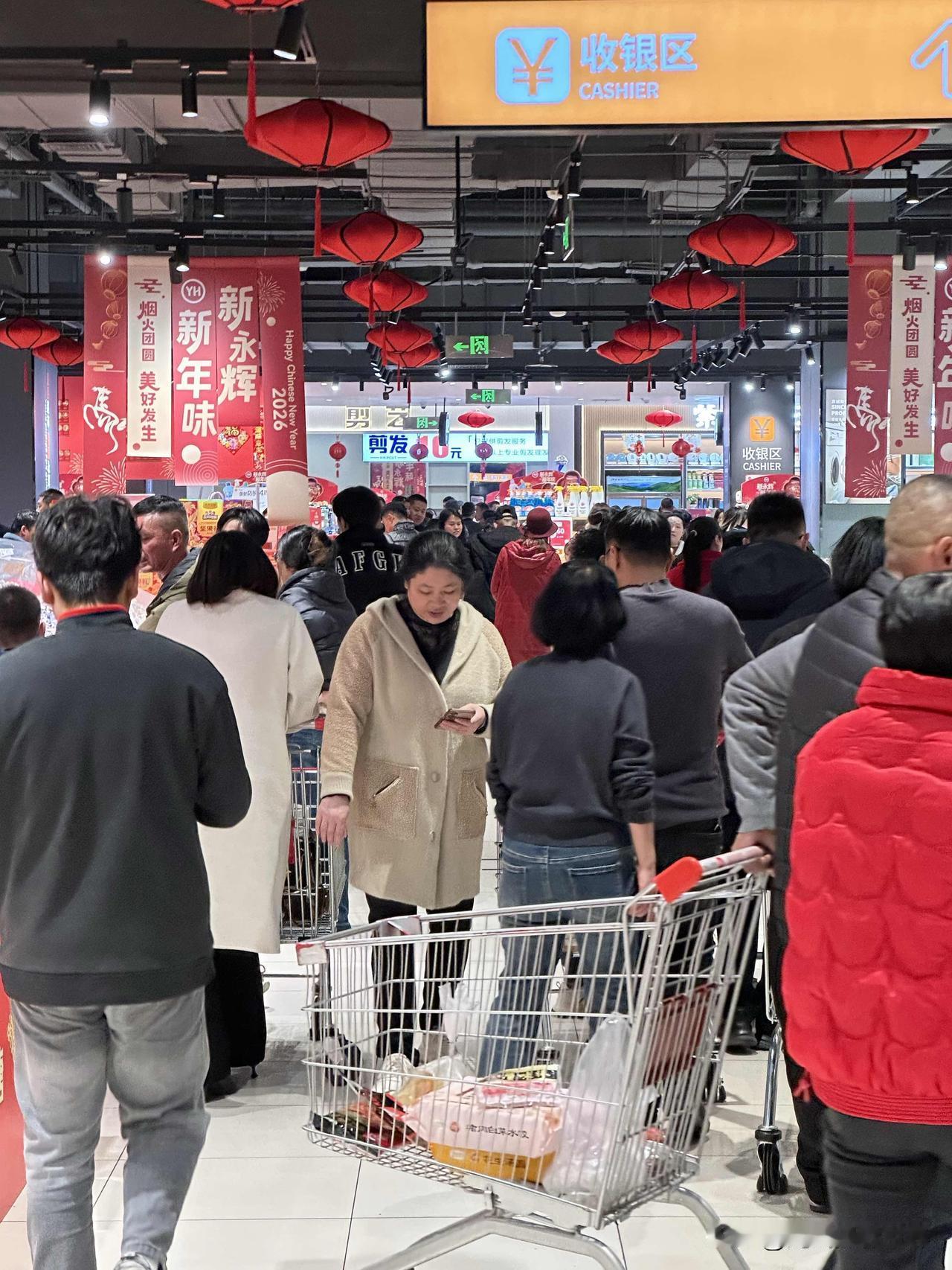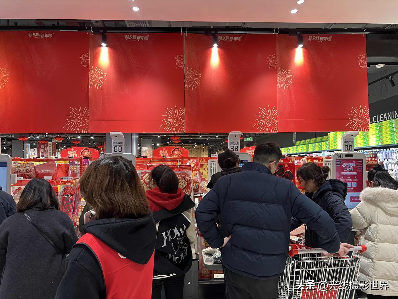 2月12日晚上,四川简阳人气好旺盛!永辉超市,采购年货的顾客一大群一大群涌入,2026年春节气氛,渐入高潮!简阳的年味,已经可以和简阳羊肉汤媲美啦! 这真是简阳春节放大招啦!吃喝玩乐购太“有范”啦!趁着好天气,大红灯笼高高挂,老乡们欢欢喜喜采购春节年货啦! 最近,小年夜以来,简阳市的东来印象、旭海时代广场、德盛商场百伦百货生活超市、石桥古镇、雄州广场广场、美好前锋……纷纷披上了2026年春节的盛装,马年生肖主题装饰,福星高照喜迎八方宾客,各大购物中心、商场、超市、购物街区人山人海、人挤人,超级火爆! 大家看我的实拍照片,旭海时代广场,永辉超市,春节主题装饰全面铺开,各种新鲜水果,人人兴高采烈、喜气洋洋,春风满面! 2026年春节,已经近在咫尺啦! 光线摄影世界曾兰谈天说地 简阳有味