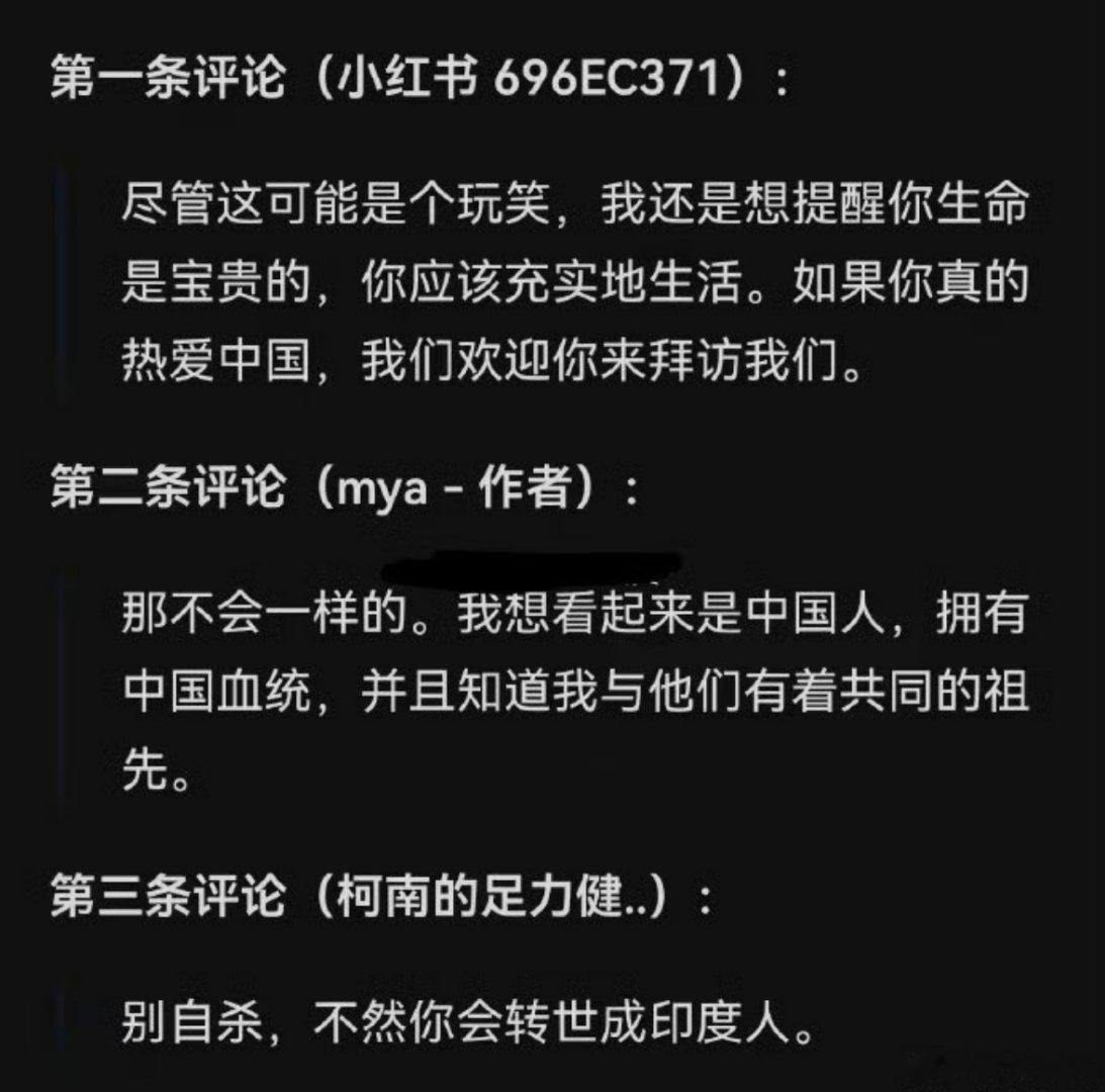 一位美国女生在小红书上留言,“希望死后能转世成中国人”。