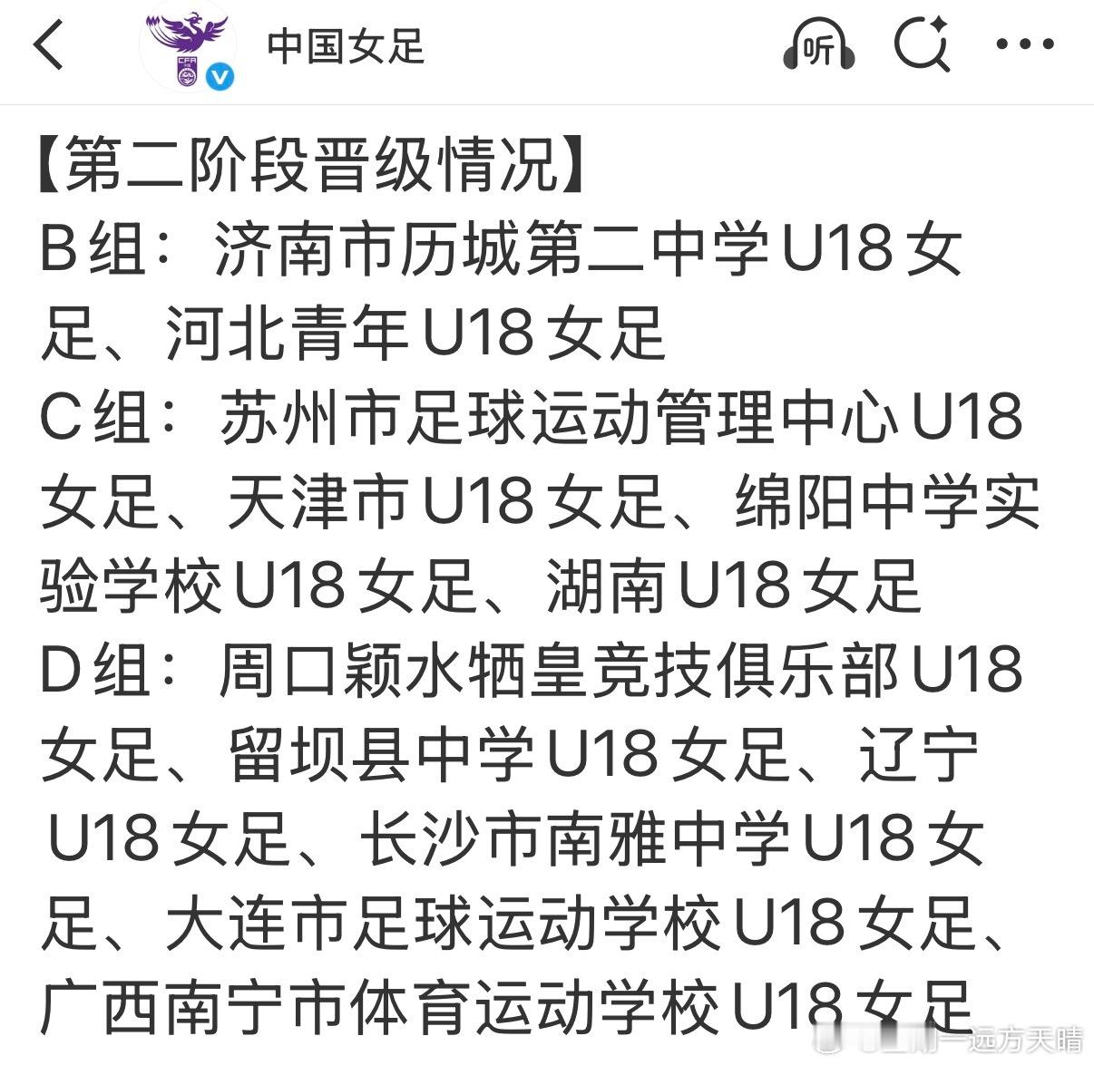 中国青少年足球联赛辽宁女足 辽宁U18女足以3胜1负D组第二晋级第二阶段。