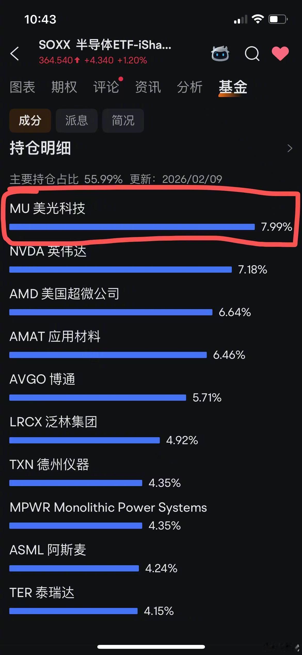 转:SOXX指数有个规律,几乎谁是最热的股票就把谁的权重配置到最高,之前是英伟达