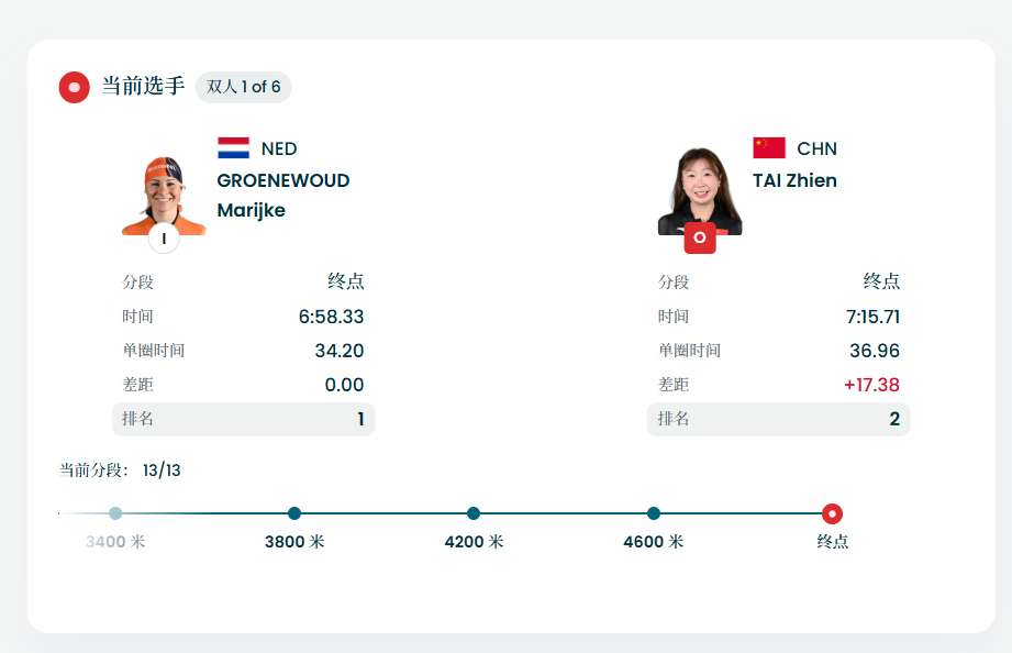 米兰冬奥会速度滑冰女子5000米项目,🇨🇳中国19岁选手第一组出发顺利完成比赛,她的成绩是:7:15.71