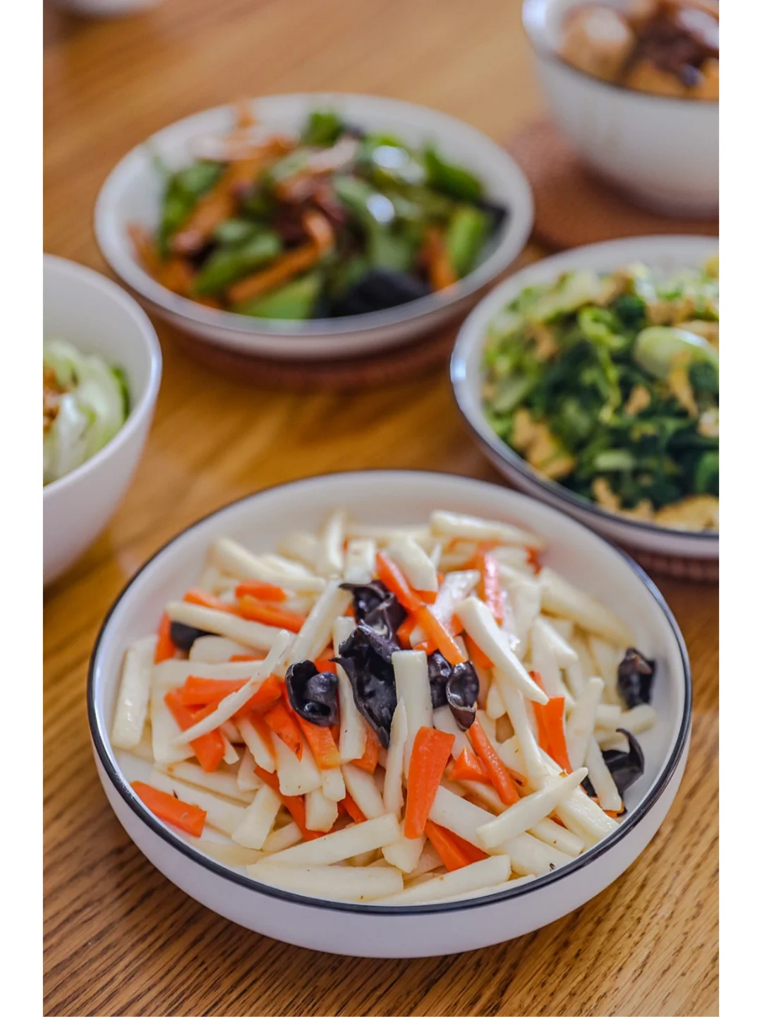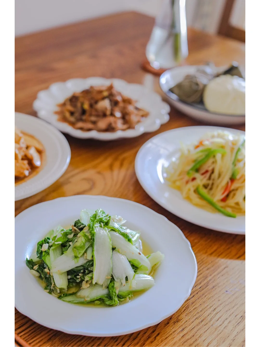 我的宅家美食日记 笔记灵感 1:肉末豆腐 2:清炒时蔬 3:虾皮小白菜 4:平菇炒肉片 5:炝拌球形生菜 6:笋烧百叶结 7:炝土豆丝 8:自制香肠 🌈北方人不是天天吃面条[微笑R],也会让家常菜在包子、饺子之间来回穿梭。 🌈热腾腾的饭香、菜香,幻化成我们温暖的日常,于无声处,让我们获得力量。