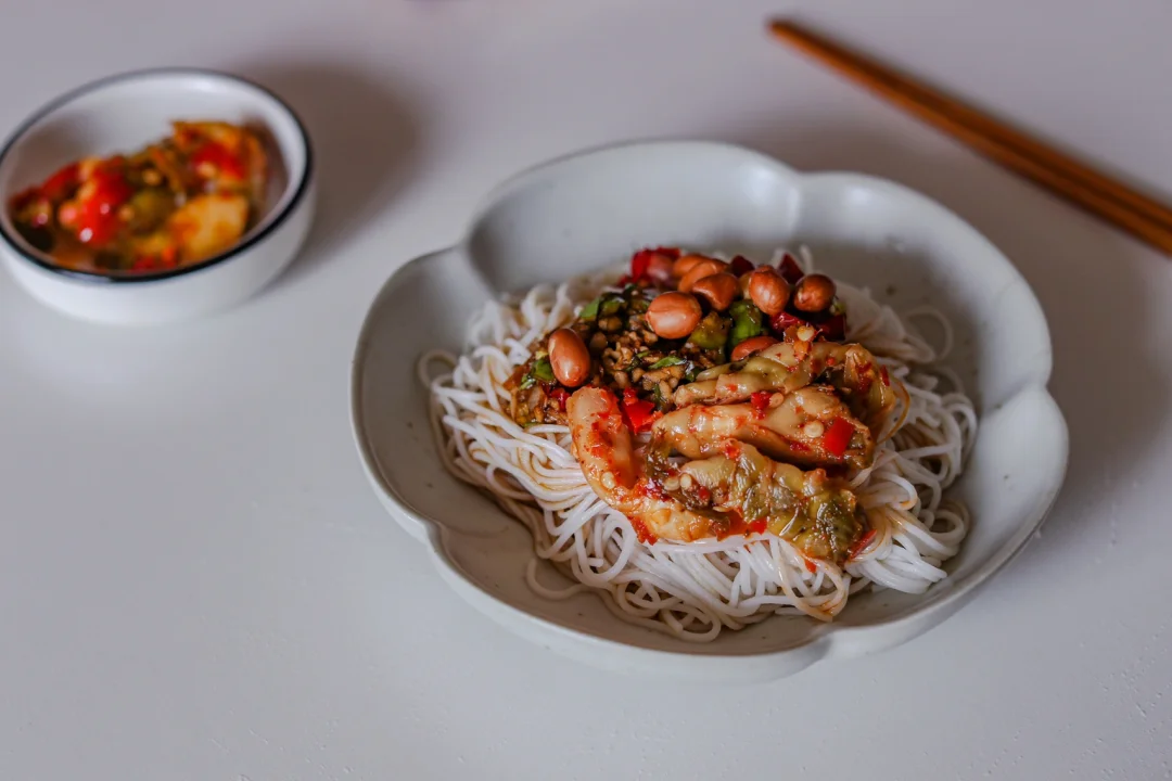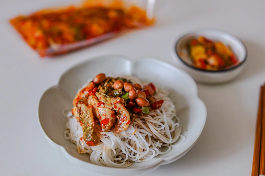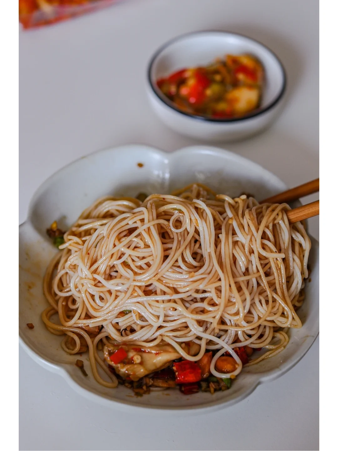 笔记灵感 🌈一碗凉拌米粉,俘获了上长江以南吃粉的地区,也俘获了我的心。 🌈做法很简单,葱花、蒜末、姜末、生抽、老抽、醋、食盐、白糖搅拌均匀,泼上热油,就是凉拌米粉的精华和灵魂。米粉煮到能掐断,过凉水。浇上酱汁,放上花生米和萝卜干,美味的凉拌米粉大功告成。 🌈炎热的夏天,这个酱汁不管是拌面条还是米粉,都是绝绝子~
