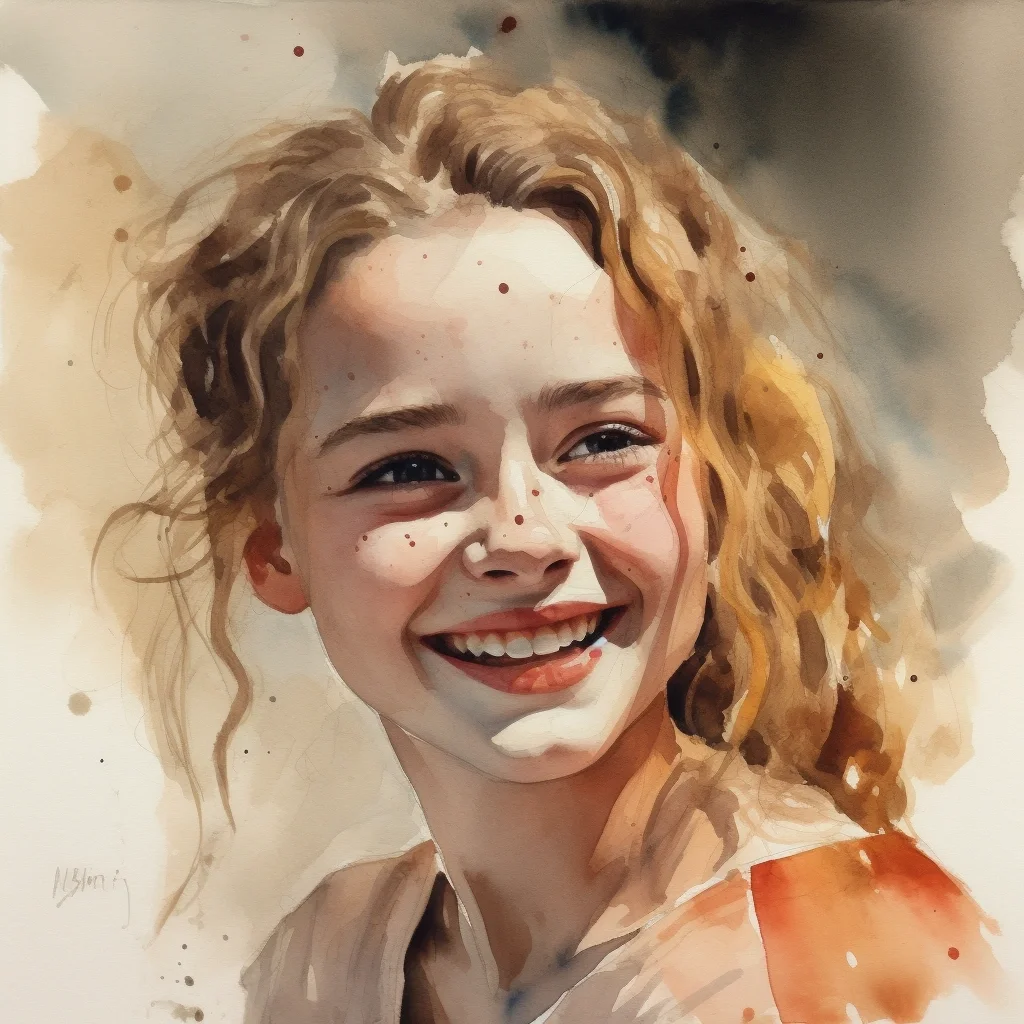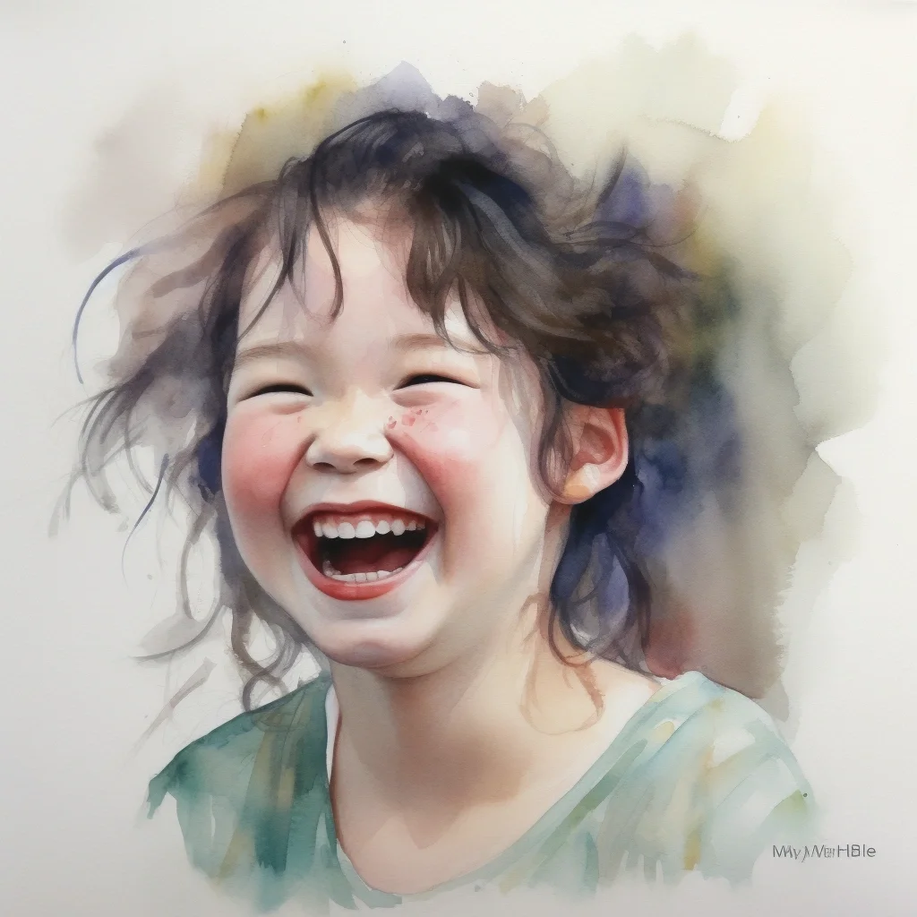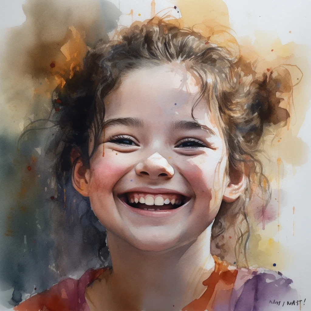 AI水彩 开心的女孩