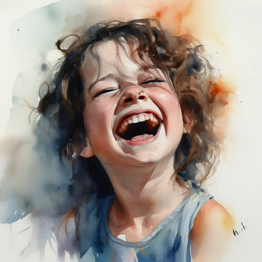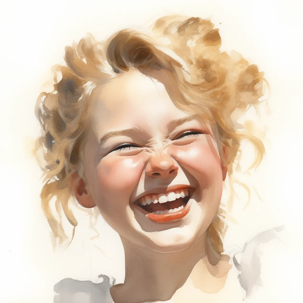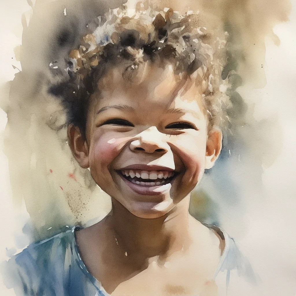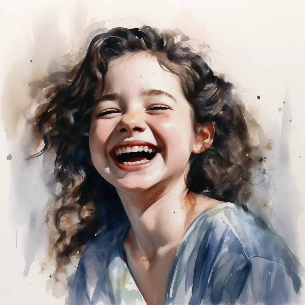 AI水彩 开心的女孩
