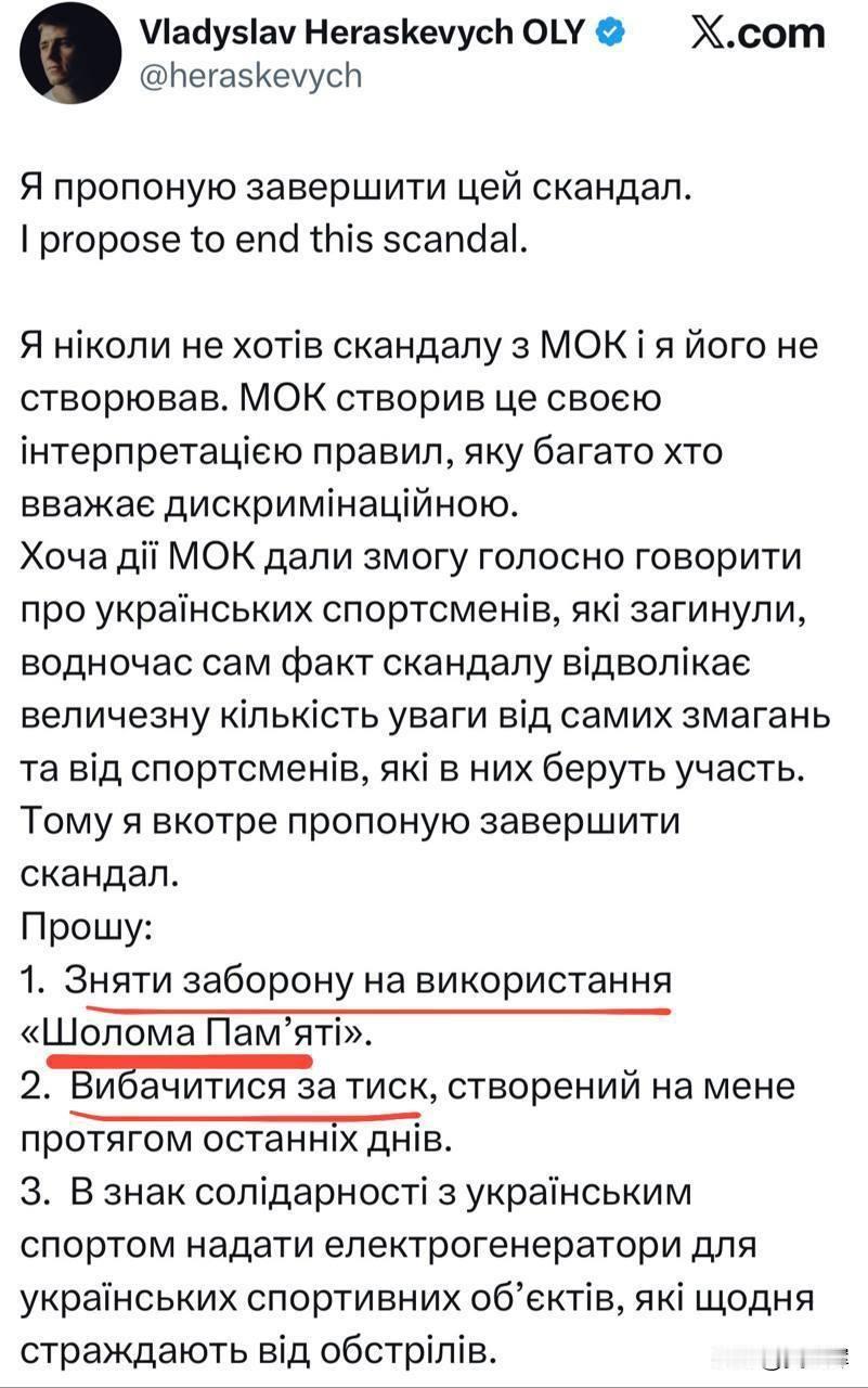 【奥委会因乌克兰运动员头盔印有乌军阵亡运动员图案,取消其奥运参赛资格】 国际奥委会取消了27岁乌克兰钢架雪车运动员弗拉迪斯拉夫·赫拉什克维奇的参赛资格,并吊销其参赛证件。原因是他的头盔上印有阵亡乌克兰运动员及教练的肖像。 国际奥委会曾事先专门警告乌克兰:不得使用带有挑衅性质的装备。但赫拉什克维奇仍戴着该头盔参加训练,并表示正赛时也不会摘下。 国际奥委会传播主任马克·亚当斯解释称,在这类问题上不能搞双重标准: “世界上有130场冲突。如果每个人都借此表达哀悼,那就不是体育比赛了,会陷入混乱。问题不在于内容本身,而在于他选择表达的场合。” 其他运动员也支持奥委会的决定。匈牙利滑雪运动员亚当·科尼亚在手心上写着:We're all fed up with "U"(我们都受够乌克兰了)。 赫拉什克维奇本人对此表示愤怒:他要求取消头盔禁令、向他道歉,并“以示声援”向乌克兰捐赠发电机。 此后,国际奥委会恢复了他的证件,但他仍无法参赛,最多只能在看台上观赛。