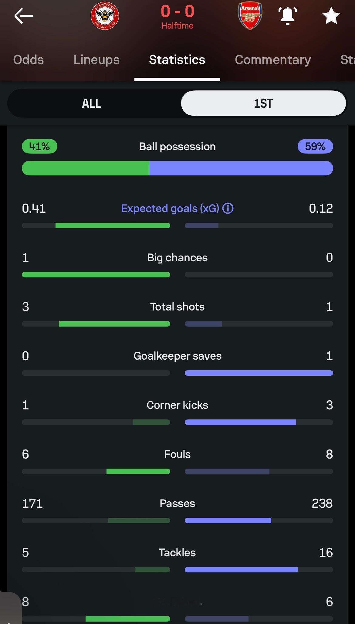 半场技术统计,跟赛前预计的一样,踢得很艰难😩阿森纳英超联赛布伦特福德vs阿森纳