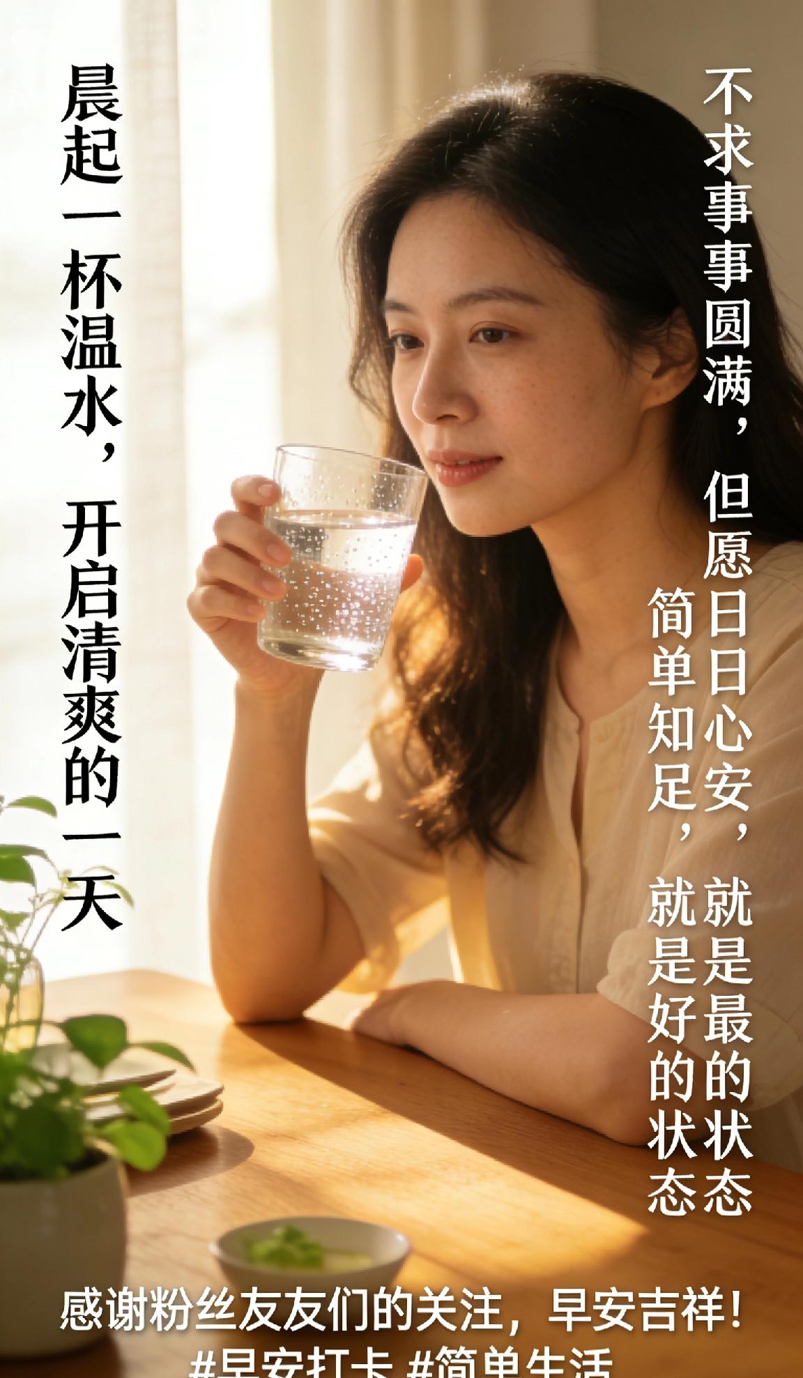 分享早上的祝福语晨起一杯温水,开启清爽的一天。不求事事圆满,但愿日日心安,简单知