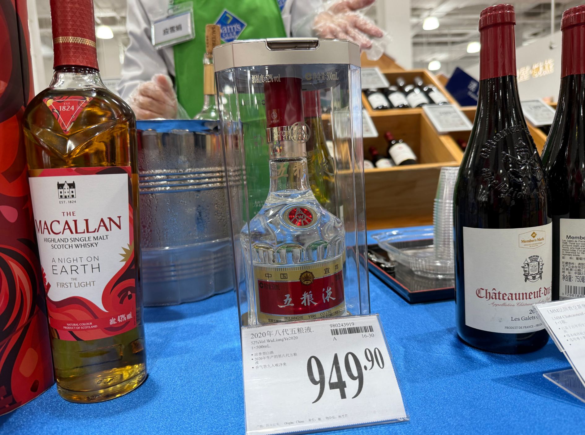 深圳福田山姆会员店试饮台的产品也悄然变化,此次陈列的是售价949.9元的500ml装2020年八代五粮液。而在2025年夏天,深圳前海山姆店试饮台摆放的是399.9元的1L装五粮春。