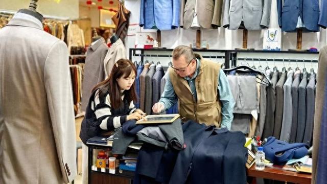 记者近日在一个工作日走访发现,也有不少境外人士前往南外滩轻纺面料市场咨询、定制服装。位于南外滩市场内的丹锦服饰设计师许成芳回忆,前两天,一位南非客户花费约5000美元在这里定制了十几套西装,因为“服装定制在我的国家属于高端奢侈品,5000美元只够做一两套”。