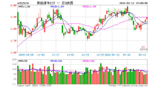 2月12日,新能源车ETF(515030)涨1.07%,成交额1.56亿元。当日份额减少700.00万份,最新份额为21.28亿份,近20个交易日份额减少1.16亿份。最新资产净值计算值为40.34亿元。