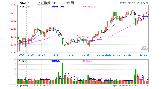 2月12日,上证指数ETF(510210)涨0.10%,成交额2.32亿元。当日份额增加3900.00万份,最新份额为67.61亿份,近20个交易日份额增加12.87亿份。最新资产净值计算值为70.41亿元。