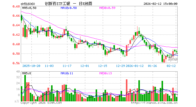 2月12日,创新药ETF工银(516060)跌0.34%,成交额320.12万元。当日份额减少400.00万份,最新份额为2.97亿份,近20个交易日份额增加3500.00万份。最新资产净值计算值为1.73亿元。