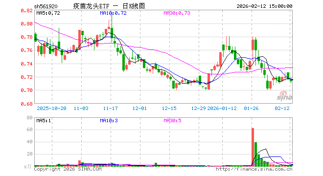 2月12日,疫苗龙头ETF(561920)跌0.56%,成交额162.63万元。当日份额减少100.00万份,最新份额为5869.20万份,近20个交易日份额增加2800.00万份。最新资产净值计算值为4200.59万元。