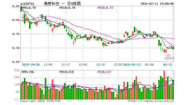2月12日,恒生科技ETF嘉实(159741)跌1.42%,成交额1.47亿元。当日份额增加3000.00万份,最新份额为13.91亿份,近20个交易日份额增加1.75亿份。最新资产净值计算值为9.68亿元。