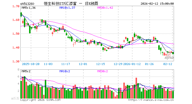 2月12日,恒生科技ETF汇添富(513260)跌1.31%,成交额2.72亿元。当日份额增加3000.00万份,最新份额为54.88亿份,近20个交易日份额增加3.51亿份。最新资产净值计算值为74.24亿元。