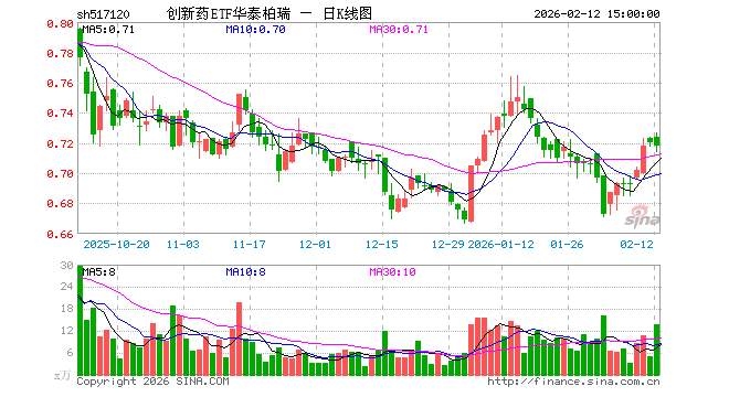 2月12日,创新药ETF华泰柏瑞(517120)跌0.28%,成交额996.76万元。当日份额减少600.00万份,最新份额为4.01亿份,近20个交易日份额减少600.00万份。最新资产净值计算值为2.88亿元。