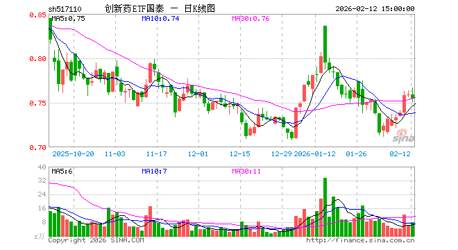 2月12日,创新药ETF国泰(517110)跌0.66%,成交额589.02万元。当日份额减少300.00万份,最新份额为6.61亿份,近20个交易日份额增加6600.00万份。最新资产净值计算值为5.01亿元。