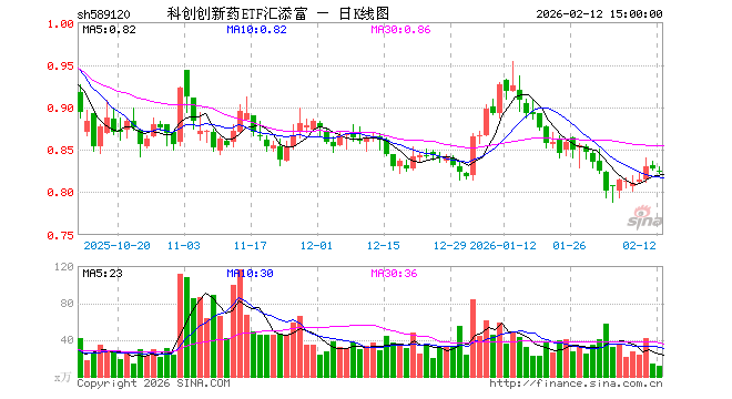 2月12日,科创创新药ETF汇添富(589120)跌0.48%,成交额914.59万元。当日份额减少200.00万份,最新份额为5.91亿份,近20个交易日份额增加1.18亿份。最新资产净值计算值为4.86亿元。