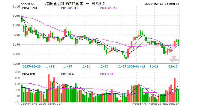 2月12日,港股通创新药ETF嘉实(520970)跌1.53%,成交额7234.62万元。当日份额减少200.00万份,最新份额为12.02亿份,近20个交易日份额减少200.00万份。最新资产净值计算值为10.93亿元。