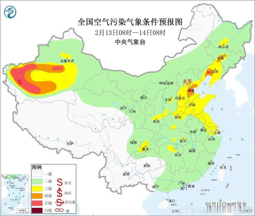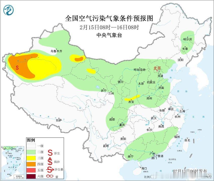 从空气质量看,辽宁江苏等地的雾混合着霾。另外,新疆塔里木盆地依然有沙尘污染,而且今后3天会持续。目前看,13日至14日白天,华北中南部、黄淮中西部、江淮等地大气扩散条件一般,部分地区有间歇性轻至中度霾,14日夜间起到15日,受冷空气影响,上述地区霾天气自北向南逐渐减弱。