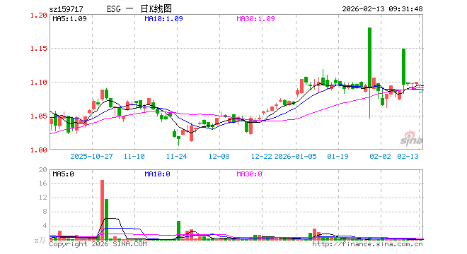 2月13日,ESGETF(159717)开盘跌1.27%,报1.085元。ESGETF(159717)重仓股方面,宁德时代开盘跌0.07%,贵州茅台涨0.00%,中国平安跌0.59%,中际旭创跌0.66%,紫金矿业跌3.75%,招商银行跌0.10%,美的集团跌0.36%,兴业银行涨0.05%,长江电力涨0.04%,东方财富涨0.18%。