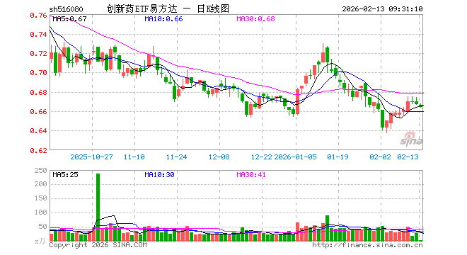 2月13日,创新药ETF易方达(516080)开盘跌0.15%,报0.666元。创新药ETF易方达(516080)重仓股方面,药明康德开盘跌0.01%,恒瑞医药涨0.03%,华东医药跌0.08%,复星医药跌0.26%,科伦药业涨0.31%,百济神州跌0.19%,长春高新涨0.01%,康龙化成跌0.78%,泰格医药跌0.64%,艾力斯涨0.58%。