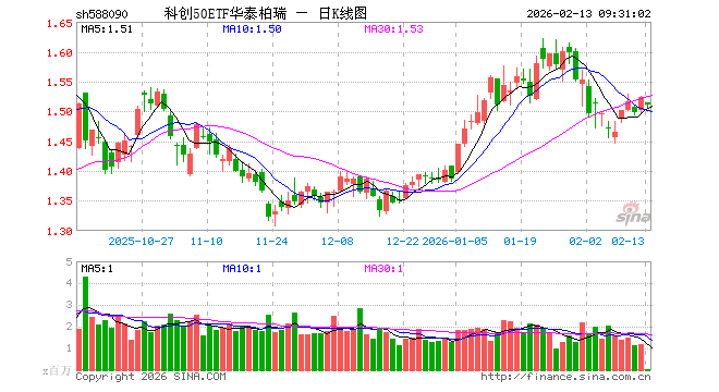 2月13日,科创50ETF华泰柏瑞(588090)开盘跌0.59%,报1.514元。科创50ETF华泰柏瑞(588090)重仓股方面,中芯国际开盘跌0.30%,寒武纪跌1.12%,海光信息跌0.89%,澜起科技跌0.78%,中微公司跌0.63%,金山办公跌0.96%,联影医疗涨0.01%,拓荆科技跌0.34%,芯原股份跌2.78%,沪硅产业跌0.15%。