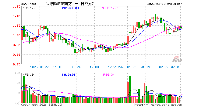 2月13日,科创50ETF南方(588150)开盘涨0.00%,报1.046元。科创50ETF南方(588150)重仓股方面,中芯国际开盘跌0.30%,寒武纪跌1.12%,海光信息跌0.89%,澜起科技跌0.78%,中微公司跌0.63%,金山办公跌0.96%,联影医疗涨0.01%,拓荆科技跌0.34%,芯原股份跌2.78%,沪硅产业跌0.15%。