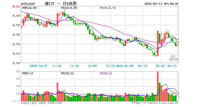 2月13日,酒ETF(512690)开盘涨0.19%,报0.536元。酒ETF(512690)重仓股方面,贵州茅台开盘涨0.00%,五粮液涨0.08%,泸州老窖涨0.34%,山西汾酒涨0.00%,洋河股份涨0.15%,今世缘涨0.09%,青岛啤酒涨0.06%,古井贡酒涨0.32%,燕京啤酒跌0.24%,舍得酒业涨1.03%。