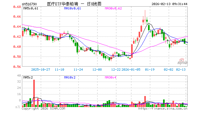 2月13日,医疗ETF华泰柏瑞(516790)开盘跌0.17%,报0.604元。医疗ETF华泰柏瑞(516790)重仓股方面,迈瑞医疗开盘跌0.02%,联影医疗涨0.01%,爱尔眼科跌0.19%,鱼跃医疗跌0.03%,新产业涨0.31%,爱美客涨0.03%,乐普医疗跌0.06%,福瑞医科跌0.29%,惠泰医疗跌1.01%,英科医疗跌0.02%。
