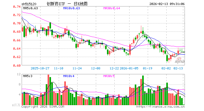2月13日,创新药ETF(515120)开盘跌0.32%,报0.631元。创新药ETF(515120)重仓股方面,药明康德开盘跌0.01%,恒瑞医药涨0.03%,华东医药跌0.08%,复星医药跌0.26%,科伦药业涨0.31%,百济神州跌0.19%,长春高新涨0.01%,康龙化成跌0.78%,泰格医药跌0.64%,艾力斯涨0.58%。