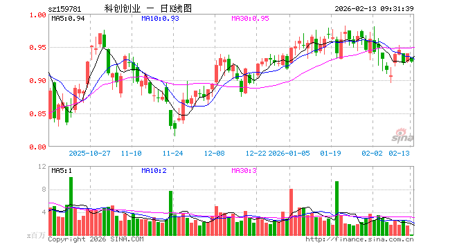 2月13日,科创创业ETF易方达(159781)开盘跌0.64%,报0.934元。科创创业ETF易方达(159781)重仓股方面,中际旭创开盘跌0.66%,新易盛跌1.02%,宁德时代跌0.07%,寒武纪跌1.12%,阳光电源跌1.31%,中芯国际跌0.30%,海光信息跌0.89%,胜宏科技跌0.65%,汇川技术跌0.40%,澜起科技跌0.78%。